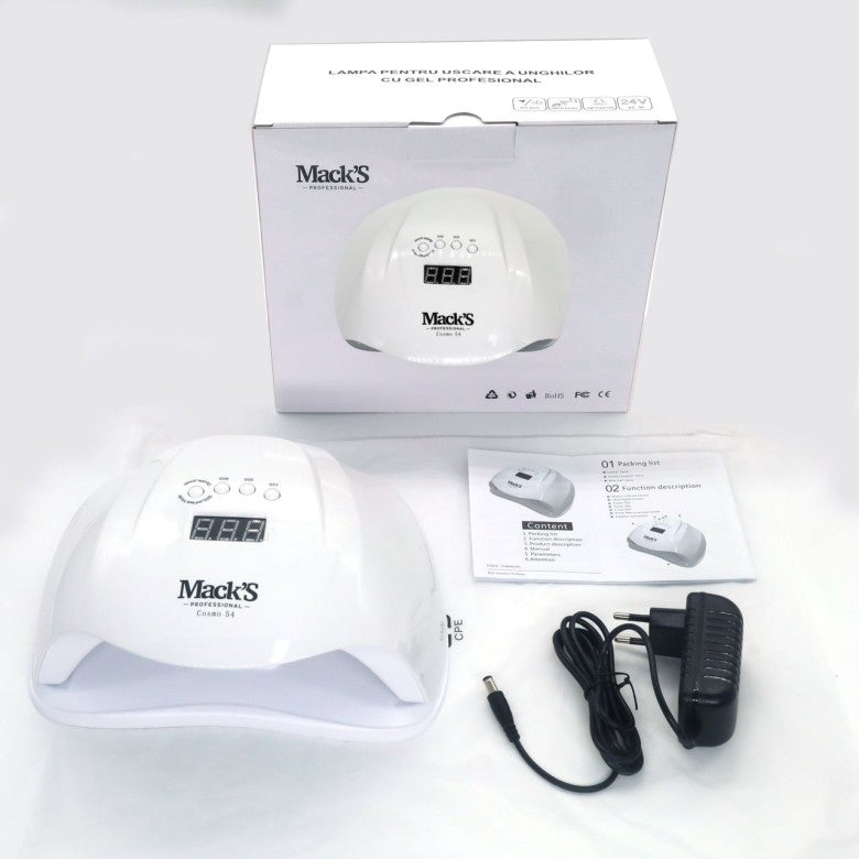 Die COSMO Lampe mit 54 W Leistung ist eine hochmoderne Lampe, die höchsten Ansprüchen genügt. Dank ihrer kompakten Abmessungen und des modernen Designs eignet sie sich dank des abnehmbaren Fußes sowohl für Maniküre als auch Pediküre. 36 LEDs an den Seiten und oben sorgen für schnelles Trocknen. Die Oberseite der Lampe verfügt über ein digitales Display und drei Zeiteinstellungen (10/30/60 Sekunden) sowie eine Taste für niedrige Wärmeentwicklung. Das Modell ist sowohl für den privaten als auch für den professionellen Gebrauch geeignet.